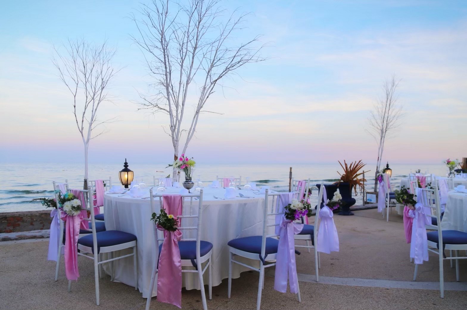หลังจากพิธีแต่งงาน แขกของคุณจะได้ดื่มด่ำกับบรรยากาศ beach wedding Hua Hin อย่างแท้จริง พร้อมวิวพระอาทิตย์ตกที่งดงาม และงานเลี้ยงสุดโรแมนติกในยามค่ำคืน